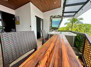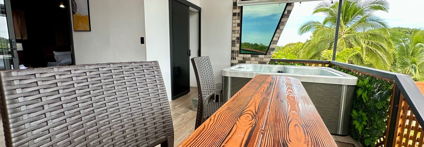 Una villa acogedora para dos o tres personas, perfecta para relajarse y disfrutar del jacuzzi privado y parqueo seguro.